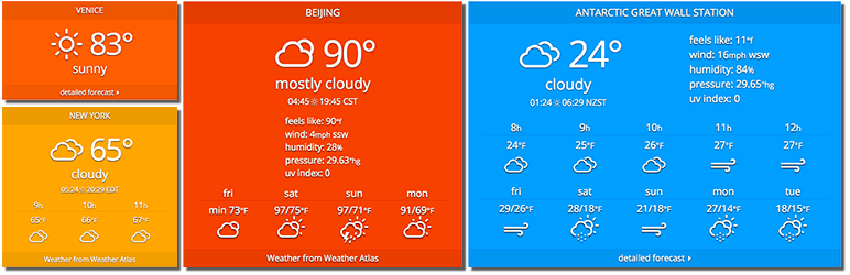 Weather widget demo (several live sites)