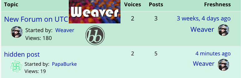 Finally, you can get a great looking bbPress site with just one plugin. No need for custom CSS or PHP programming. Turnkey bbPress! (Formerly named Weaver for bbPress by WeaverTheme.)