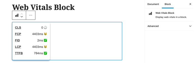Display web vitals element in a block.