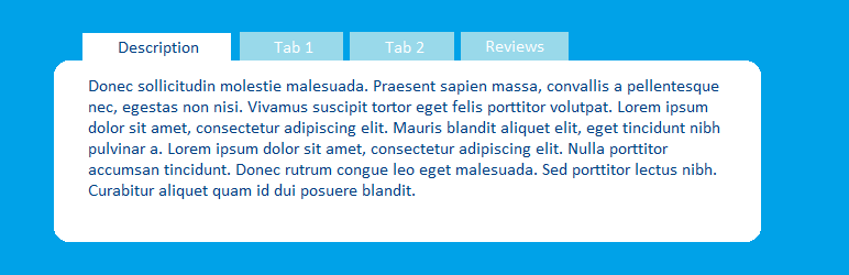 This plugin allows you to create and maintain custom tabs for products. You can create global level tabs, tabs for specific product categories and tags. You can also create tabs for individual products.