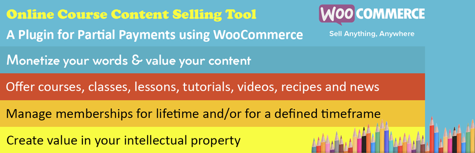 This plugin creates value in your intellectual property as it can handle all of your needs with simple WordPress posts and pages using WooCommerce plugin as shopping cart flow. Value your intellectual property, content, videos, what you do, what you write, what you think, share it and make it sellable. You are simply required to decide that what kind of packages are required to access a course, lesson, post or page.