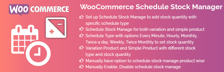 This Plugin provide you options to manage the stock quantity automatic increase throughout daily, weekly, monthly, hourly and yearly schedule type options of all your woocommerce products, scheduling stock manage with automatic increasing stock quantity.