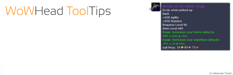 Add tooltips from “WoWHead” (http://www.wowhead.com/), useful for blogs etc. about World of Warcraft.