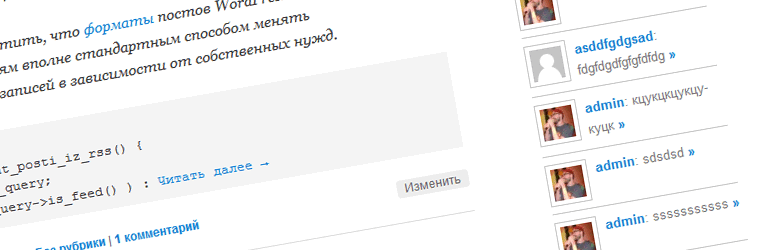 Lightweight plugin that overrides the default widget “recent comments” in WordPress, adding an avatar display visitors comments and quotes length of 50 characters.