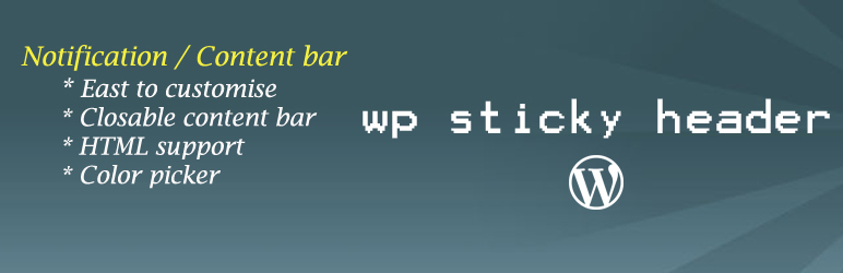 WP Sticky Header is the plugin to display some content/notification bar on top or bottom of the pages. It can be closed and the colour of the background and text colour can be modified. Notification bar can be shown on all pages or only in home page or in all posts or in selected pages / posts. Once installed and activated, settings menu will appear on the dashboard. One can customize the notifications bar. Auto close option is also available.