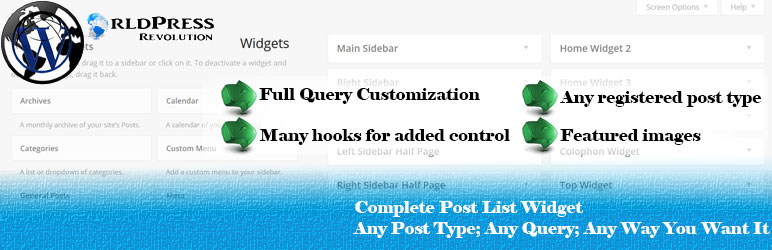 With the general posts widget, you can place a list of posts into your widget areas based on any query parameters available in WP_QUERY. You can generate the latest posts, popular posts (given you have some method of tracking post hits), post types, filter by category or other taxonomy, filter by post meta, etc… If it’s available in WP_QUERY it’s available to you in the widget. If there are customizations that the interface does not allow for, there are a number of hooks that allow you to edit and control pretty much any part of the widget from adjusting the query to adjusting the output.